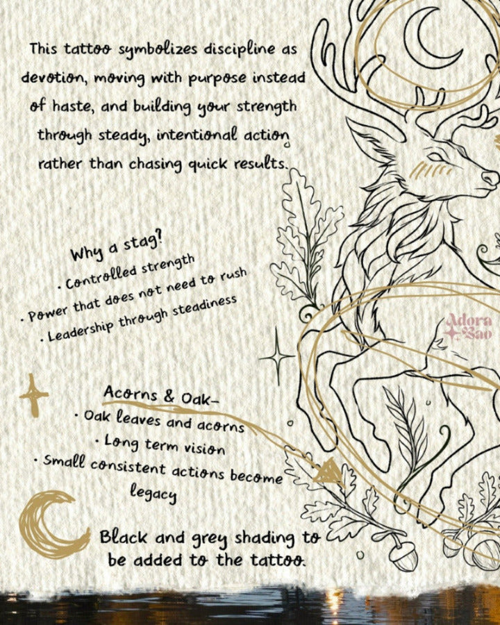 This disciplined stag talisman originates from my monthly ritual art series, where each design is created with intention and layered symbolism around growth, devotion, and embodied power.